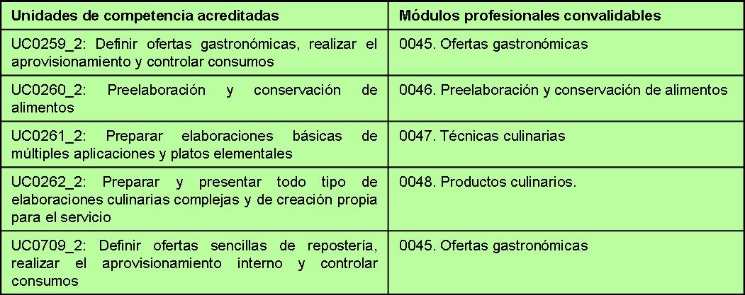 La siguiente tabla muestra la relación, de acuerdo al anexo V-a, entre las unidades de competencia acreditadas y los módulos profesionales que serían convalidables: