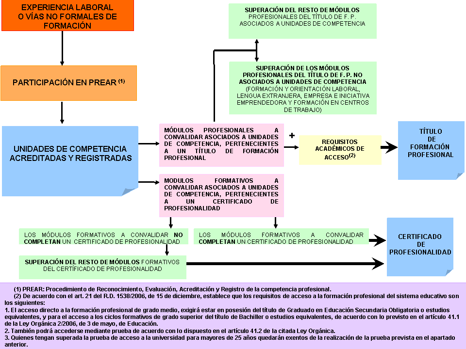 2)Los módulos formativos pertenecientes a Certificados de Profesionalidad pueden obtenerse a través de la participación en el Procedimiento de Reconocimiento, Evaluación, Acreditación y Registro de la Competencia Profesional (PREAR).