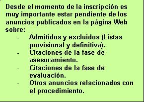 Desde el momento de la inscripción es muy importante estar pendiente de los anuncios publicados en la página Web sobre: